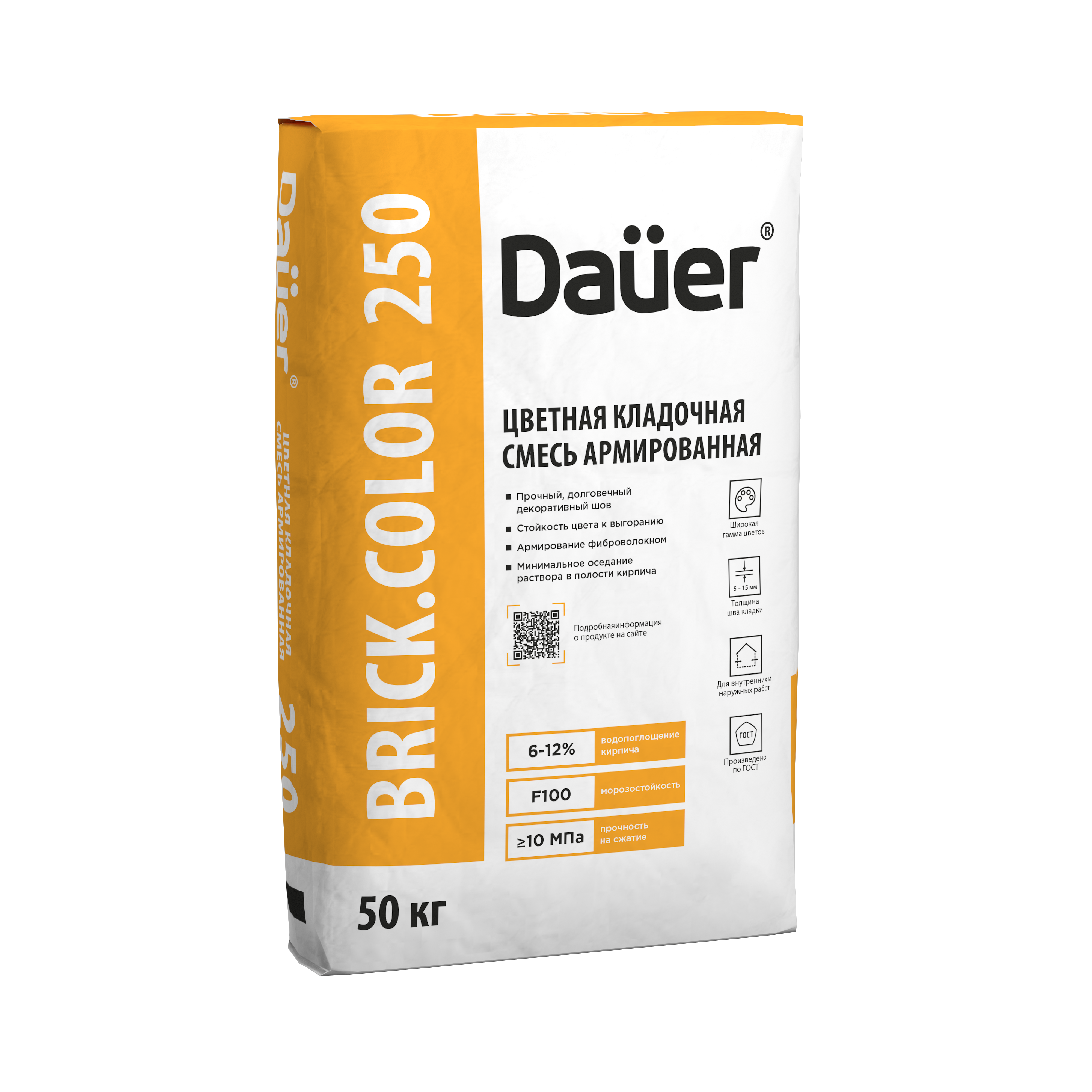 BRICK.COLOR 250 цветная кладочная смесь Dauer армированная Желтый 50 кг